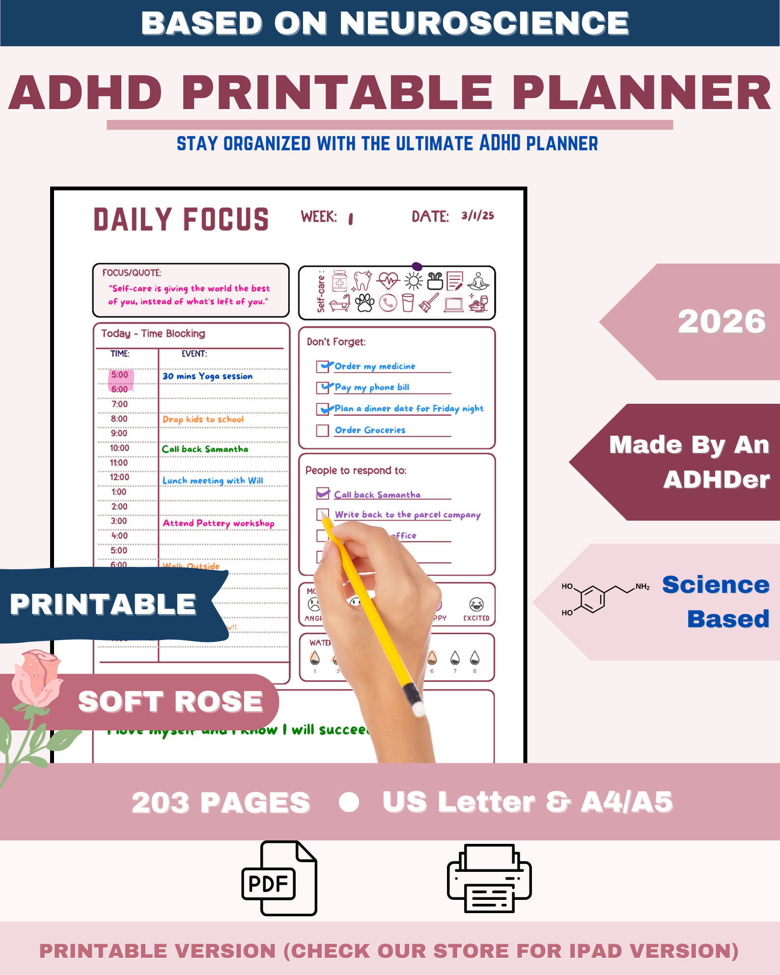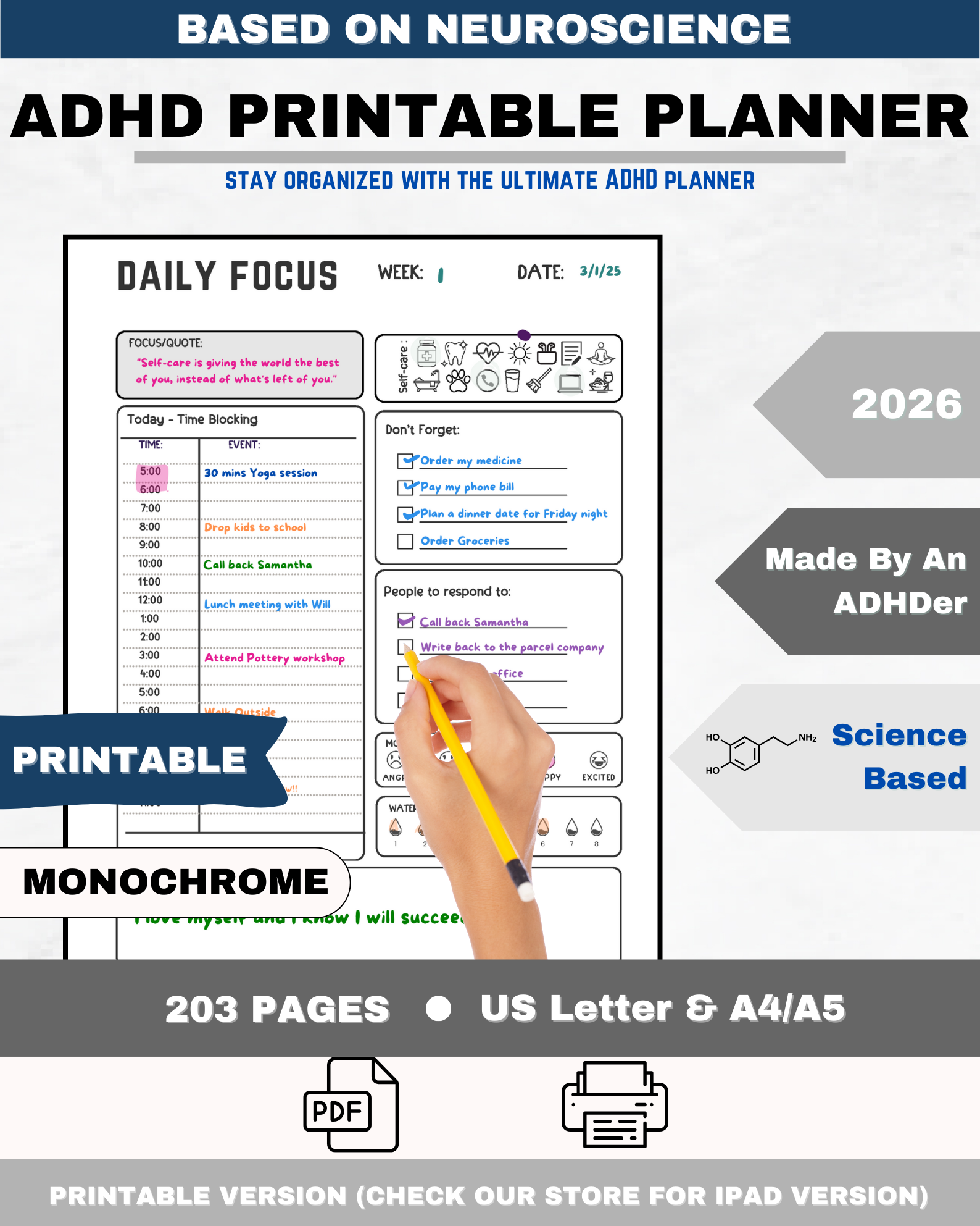 Support your ADHD brain with simple, printable tools. This collection of ADHD printable planners includes time management pages, executive functioning worksheets, emotional regulation tools, and goal‑setting templates for adults, teens, and students. Download as PDFs, print at home, and mix‑and‑match pages to create a custom ADHD planner that supports focus, organization, and follow‑through.